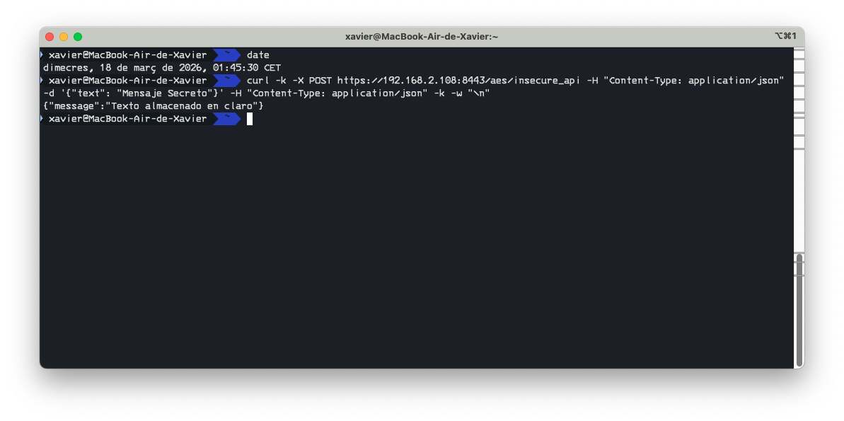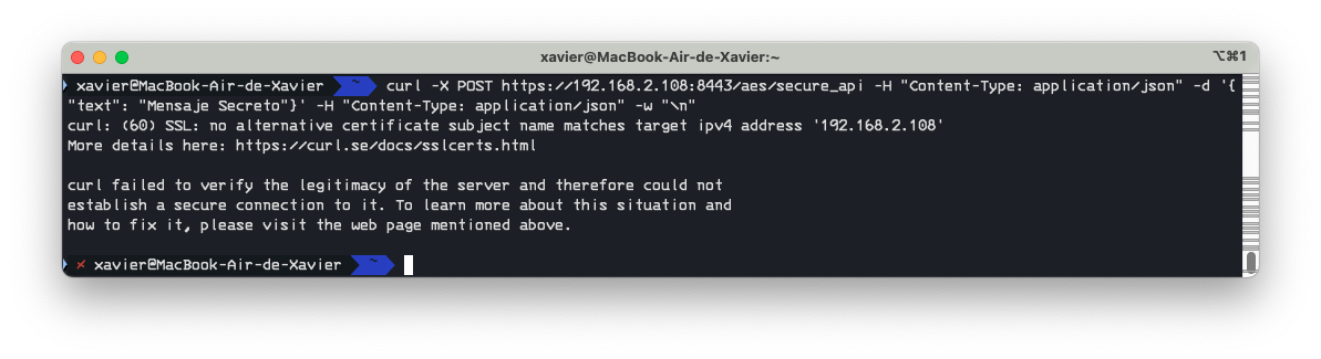 Anem a realitzar qualsevol de les proves anteriors sense el paràmetre -k en la instrucció curl