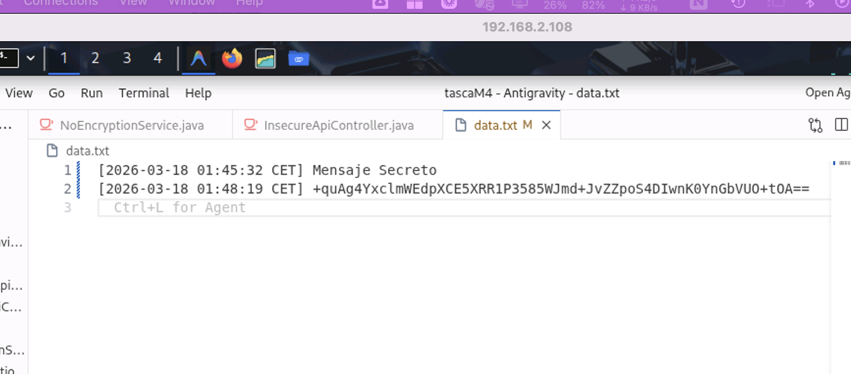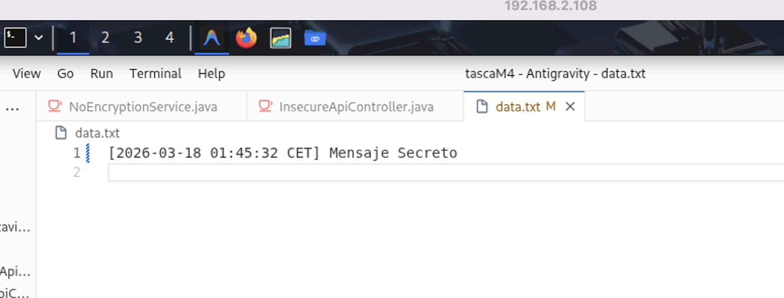 i si comprovem el fitxer data.txt del servidor hauria d'aparèixer Mensaje Secreto juntament amb el timestamp que hem comentat abans