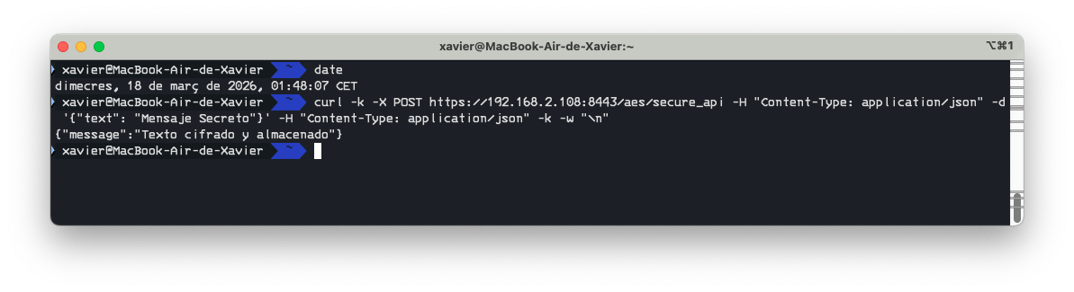 i si comprovem el fitxer data.txthauria d'aparèixer una nova línia amb Mensaje Secreto però xifrat amb AES